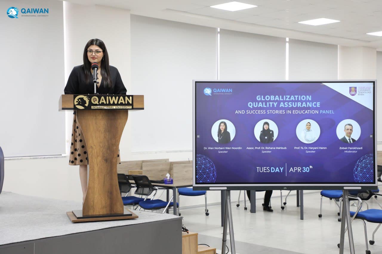 Qaiwan International University hosted distinguished guests, Dr. Wan Norbani (Director of Transnational Education Department), Associate Prof Dr. Rohana Mahbub (Head of Unit Quality Unit of iCEPS), Prof Ts. Dr Haryani Haron (Assistant Vice Chancellor CCIM) from Universiti Teknologi Mara, Malaysia, in an informative panel on Globalization and Quality Assurance in Education, and Success Stories of UiTM on April 30, 2024.