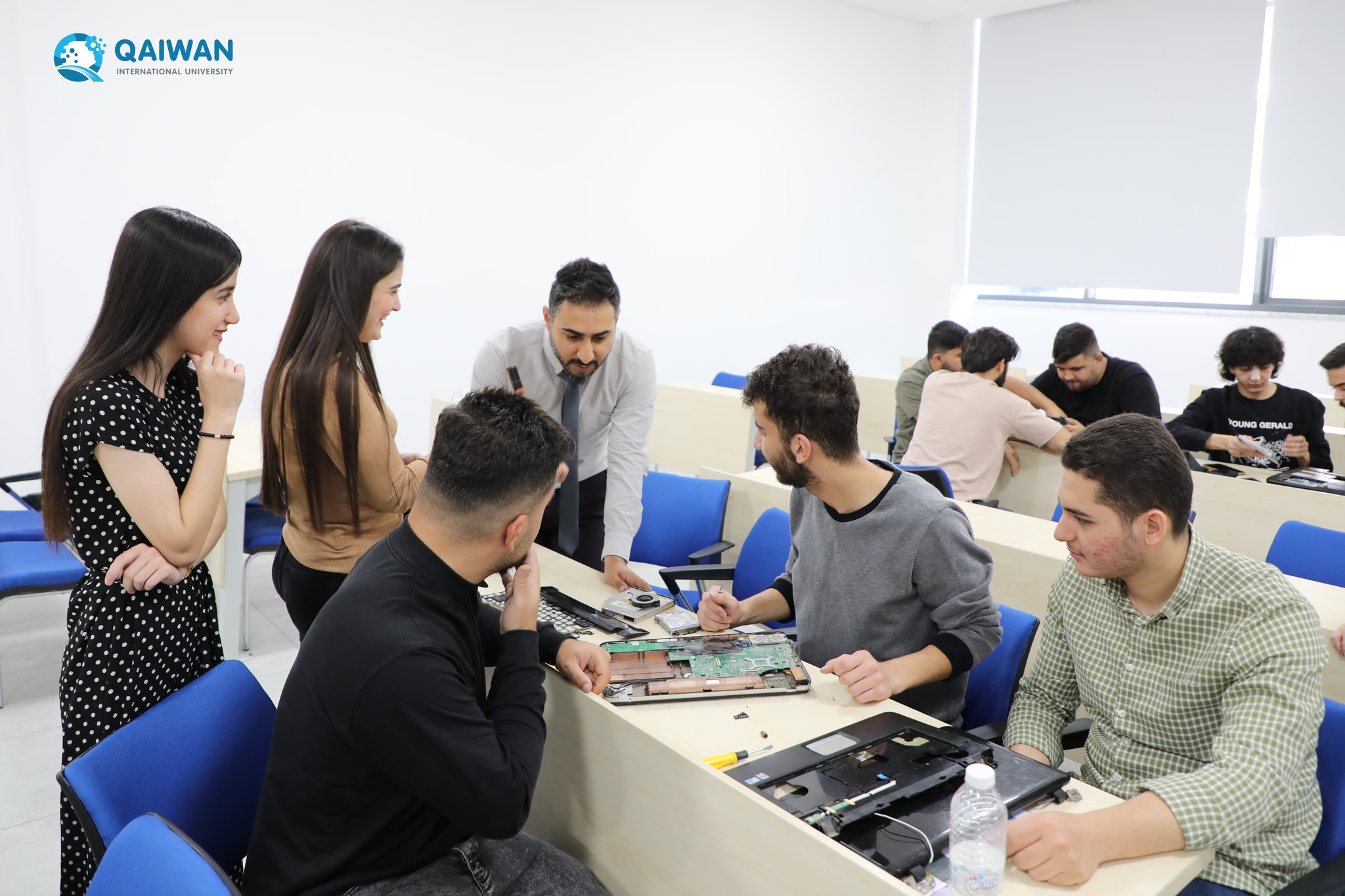 مەشقکردنی خوێندکارانی زانستی کۆمپیوتەر لەسەر سیستمی زانیاری تەکنەلۆژیا و راهێنانی پراکتیکی پێکهاتەکانی کۆمپوتەر، بە سەرپەرشتی د. محمد شیهاب مامۆستا لە فاکەڵتی ئەندازیاری زانستی کۆمپیوتەر لە زانکۆی قەیوانی نێودەوڵەتی.