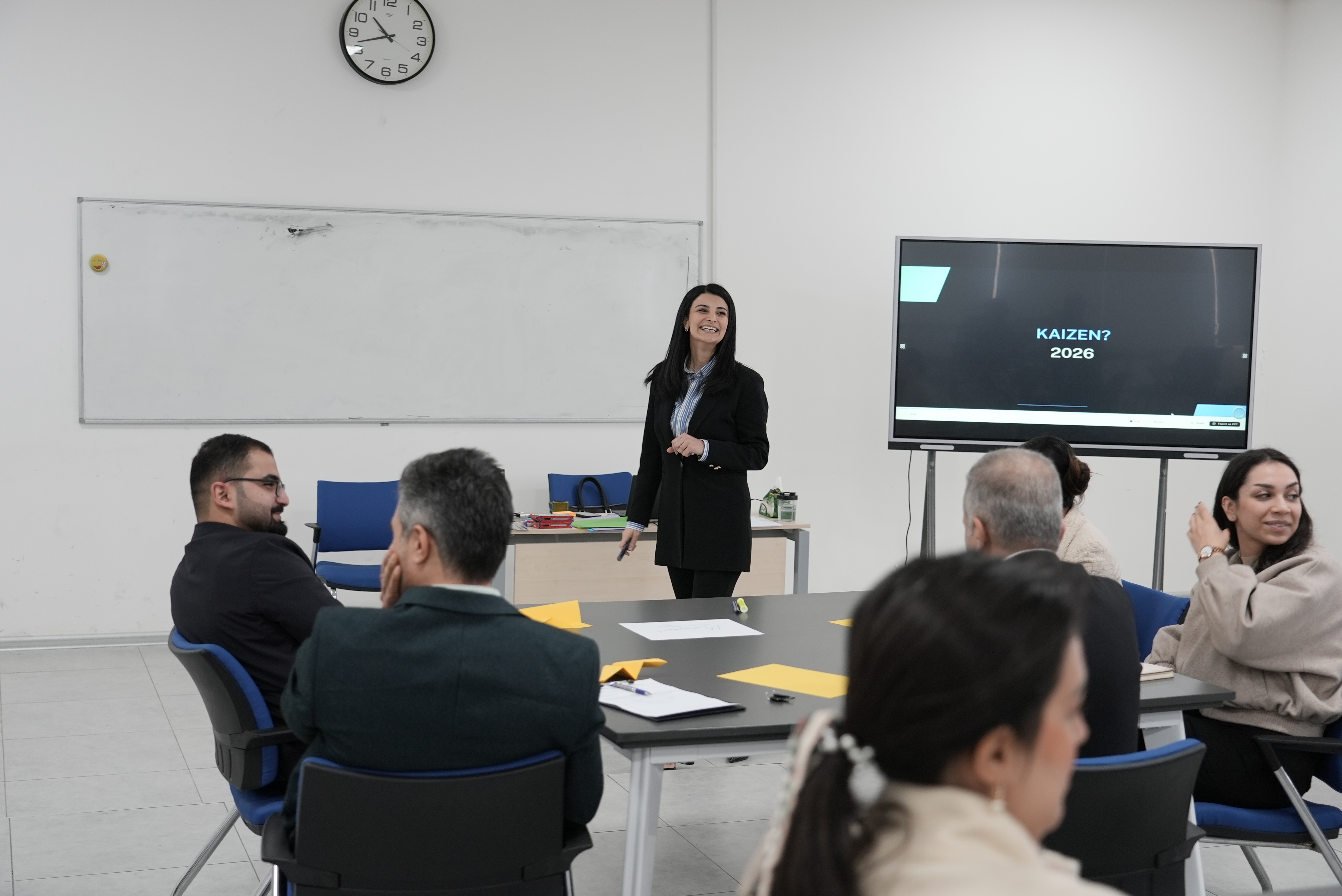 فاکەڵتی بەڕێوەبردن و زانستە کۆمەڵایەتییەکان لە زانکۆی نێودەوڵەتی قەیوان ۆرکشۆپی کایزن (باشبوونی بەردەوام) سازکرد، کە لەلایەن بەڕێزان مامۆستا شاسۆ هێمن و مامۆستا ڕۆژان مەحمود پێشکەشکرا. ۆرکشۆپەکە ڕێگا پڕاکتیکییەکانی پیشاندا بۆ ئەوەی ستاف بتوانێت کارایی خوودی باشتر بکات، کاری هەرەوەزی بەهێز بکات و پشتگیری لە گەشەپێدانی بەردەوام بکات لە هەردوو ژینگەی پیشەیی و ئەکادیمی، بۆ ئەوەی پیشان بدات چۆن باشکردنە بچووکە بەردەوامەکان دەتوانن جیاوازییەکی ڕاستەقینە لە کاری ڕۆژانەدا دروست بکەن . استضافت كلیة الإدارة والعلوم الاجتماعیة في جامعة قیوان الدولیة مؤخرًا ورشة عمل حول كایزن للتحسین المستمر، قدمّها السید شاسو هیمین والسیدة روجان محمود . أبرزت الورشة أسالیب عملیة تساعد الموظفین على تحسین الكفاءة وتعزیز العمل الجماعي ودعم التنمیة المستدامة في البیئات المهنیة والأكادیمیة، مبینّةً كیف یمكن للتحسینات الصغیرة والمتواصلة أن تحُدث فرقًا حقیقیًا في العمل الیومي . The Qaiwan International University Faculty of Management and Social Sciences recently hosted a workshop on Kaizen (Continuous Improvement), delivered by Mr. Shaso Hemin and Ms. Rozhan Mahmood. The workshop highlighted practical ways for staff to improve efficiency, enhance teamwork, and support sustainable development in both professional and academic environments, showing how small, consistent improvements can make a real difference in everyday work.