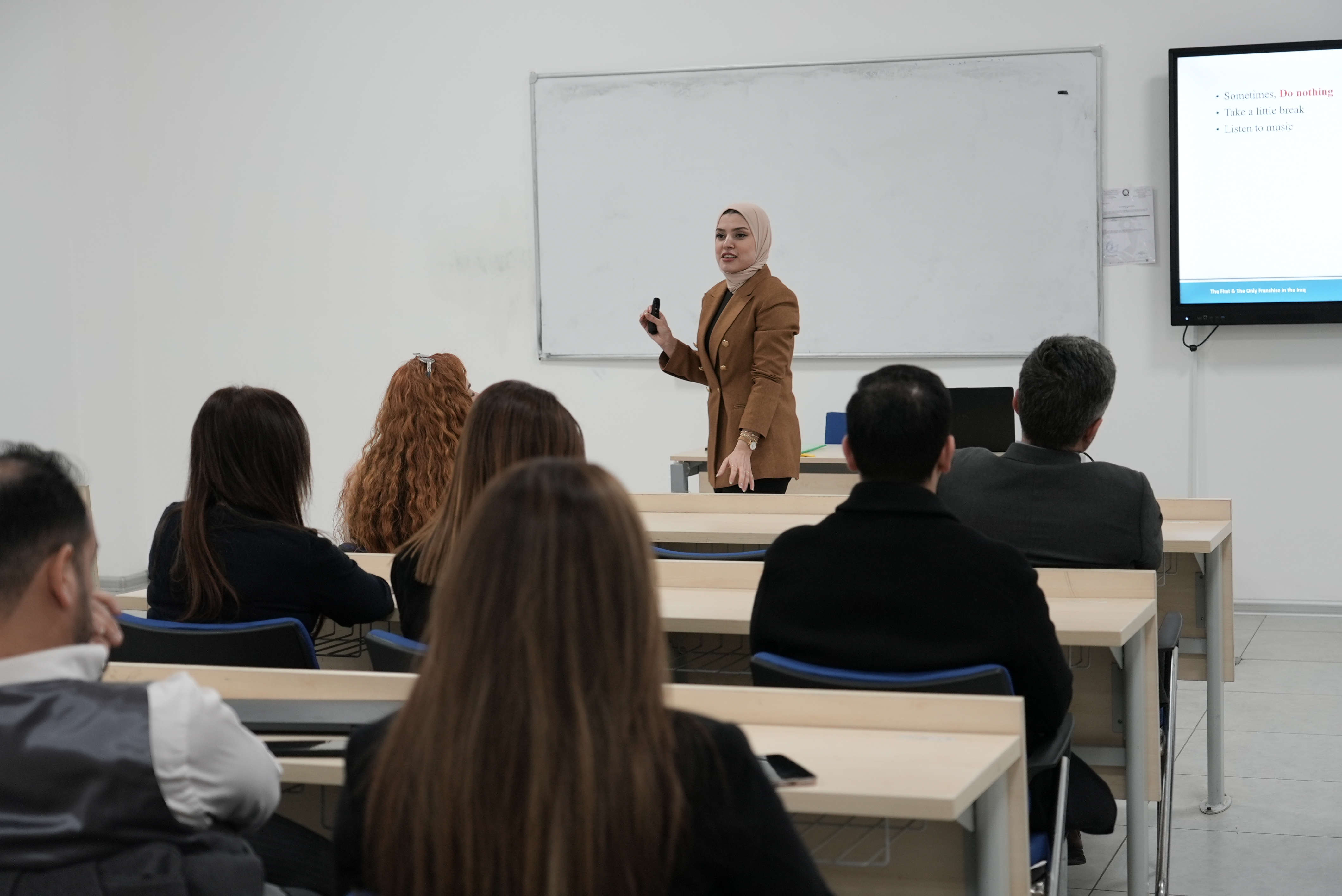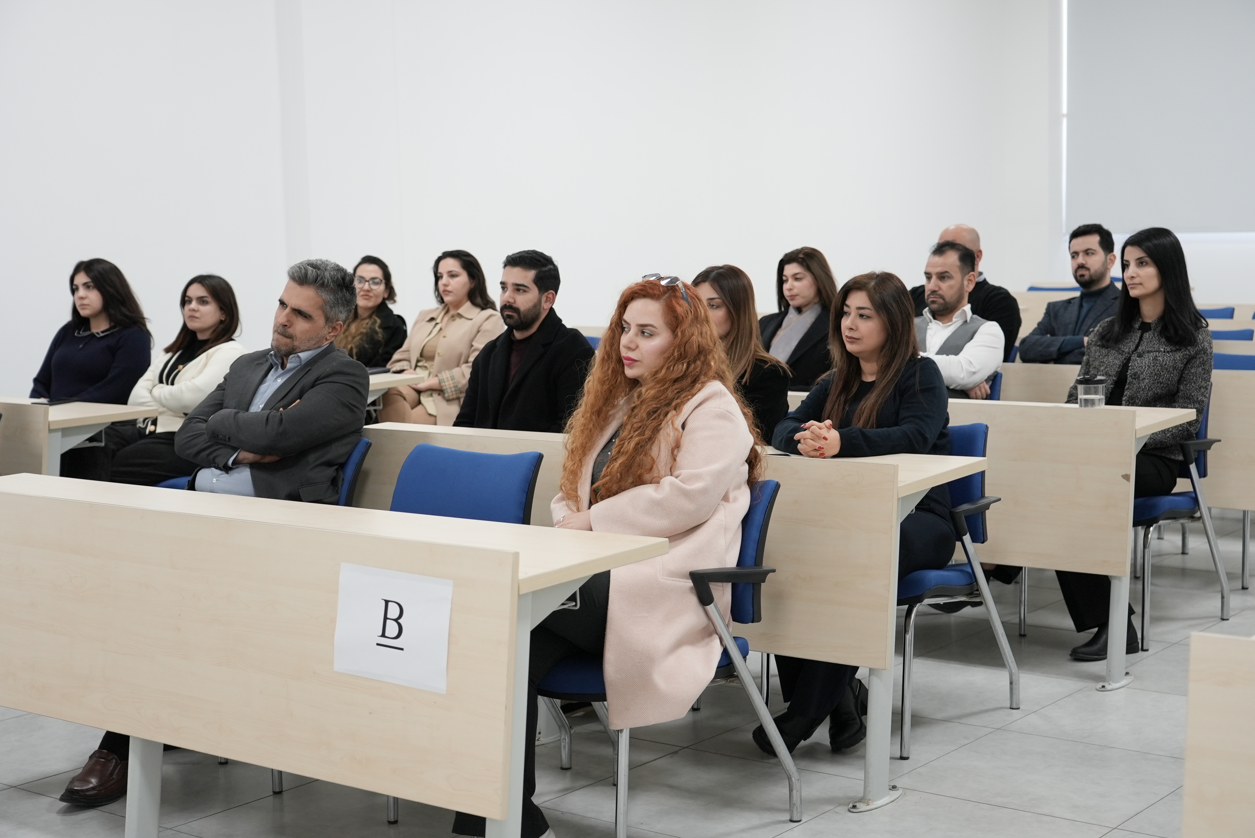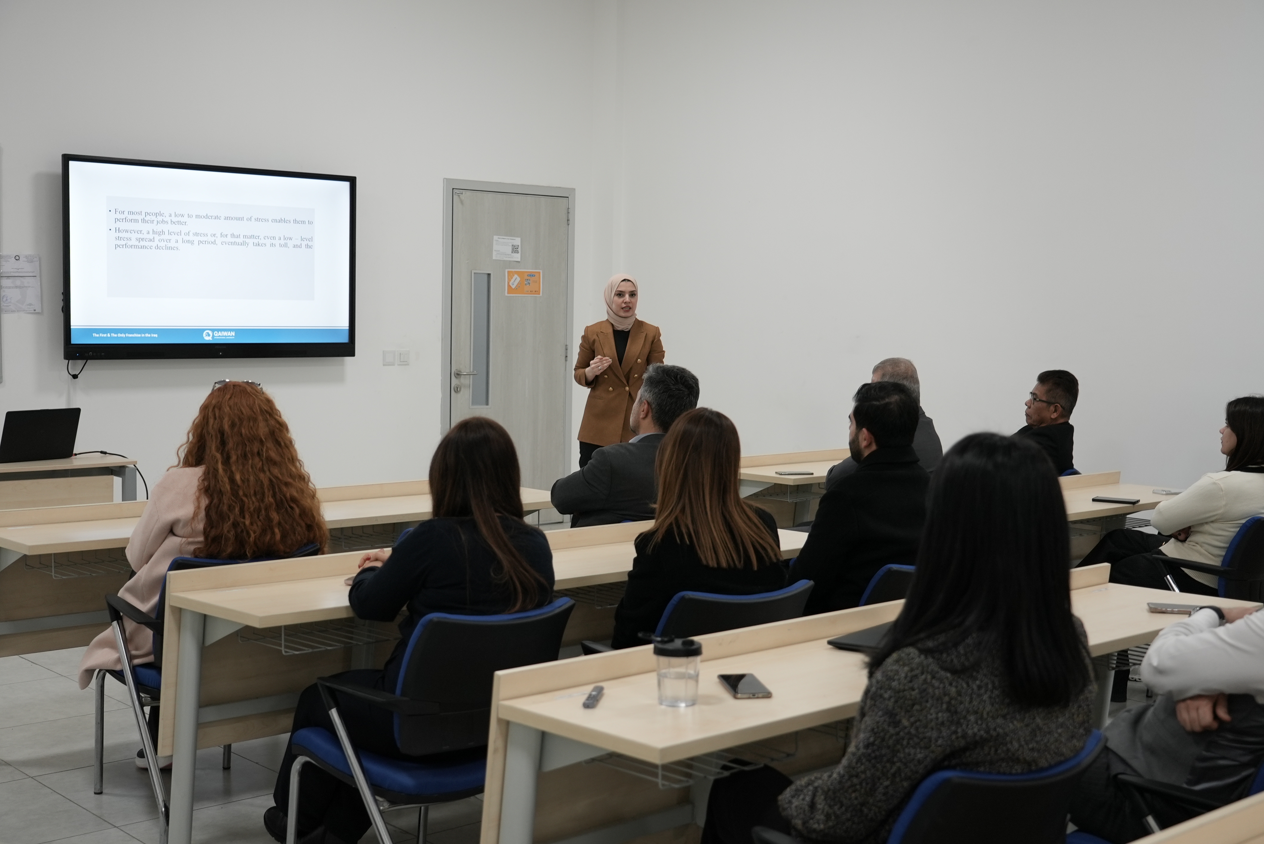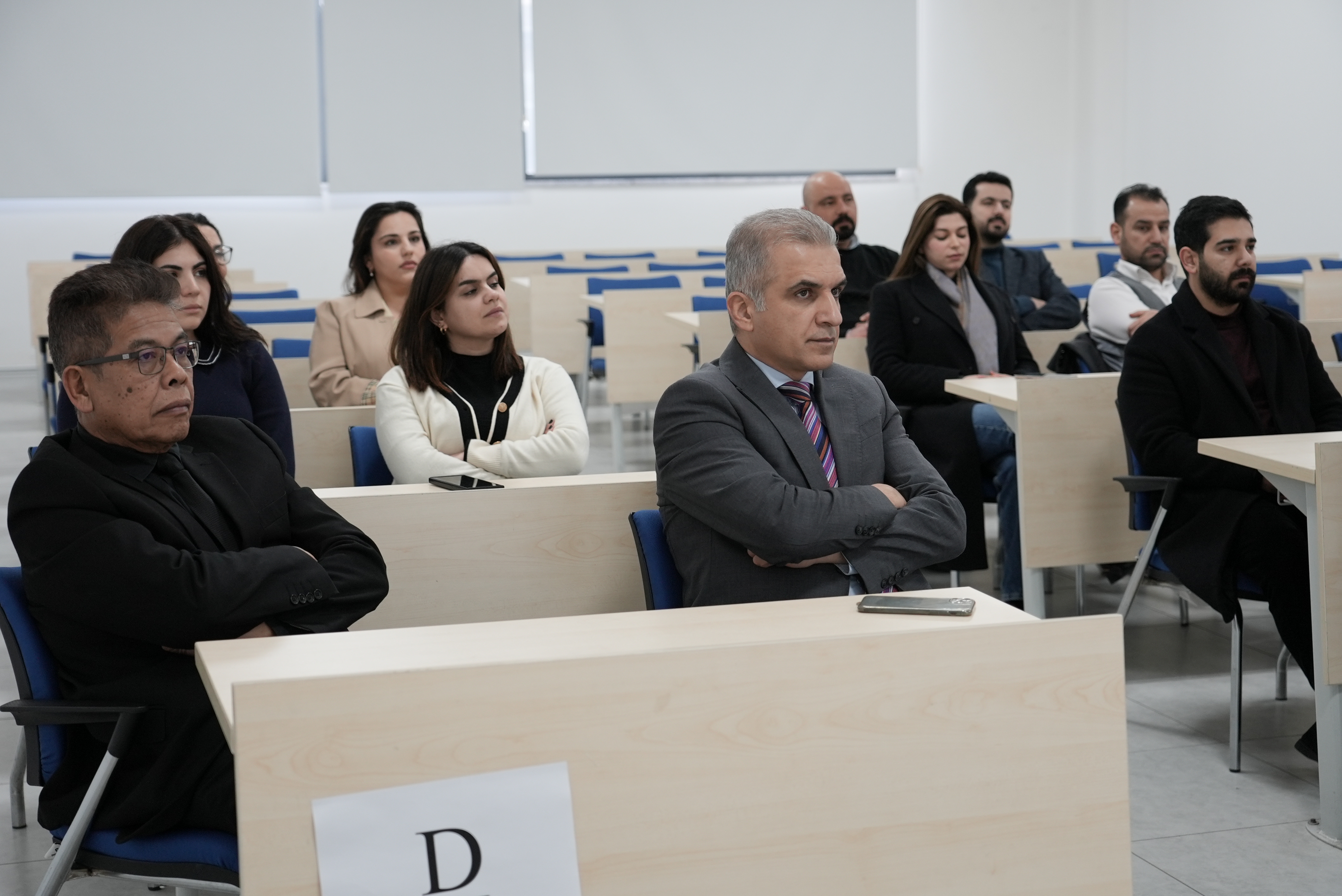 م. هاژە کامیل لە فاکەڵتی پزیشکی ددان سیمینارێکی دەربارەی "بەڕێوەبردنی فشار: تێگەیشتن، کاریگەری، و ستراتیژییەکانی ڕووبەڕووبوونەوەی پراکتیکی" پێشکەش کرد لە (٢٠٢٦/٢/١٦). سیمینارەکە تێڕوانینێکی ماناداری پێشکەش بە ئامادەبووان کرد بۆ ناسینەوەی فشار، تێگەیشتن لە کاریگەرییەکانی و بەکارهێنانی ڕێبازەکانی ڕووبەڕووبوونەوەی پراکتیکی لە شوێنە ئەکادیمی و پیشەییەکان. قدمت الأستاذة هاژا كامل من كلية طب الأسنان ندوة بعنوان "إدارة الضغوطات النفسية: الفهم والتأثير واستراتيجيات التكيف العملية" في (٢٠٢٦/٢/١٦). وقد زودت الندوة الحضور برؤى قيّمة حول التعرف على الضغوطات وفهم آثاره وتطبيق أساليب التكيف العملية في البيئات الأكاديمية والمهنية. Ms. Hazha Kamil from the Faculty of Dentistry presented a seminar titled “Stress Management: Understanding, Impact, and Practical Coping Strategies” on February 16, 2026. The seminar provided attendees with meaningful insights into recognizing stress, understanding its effects, and applying practical coping approaches in academic and professional settings.
