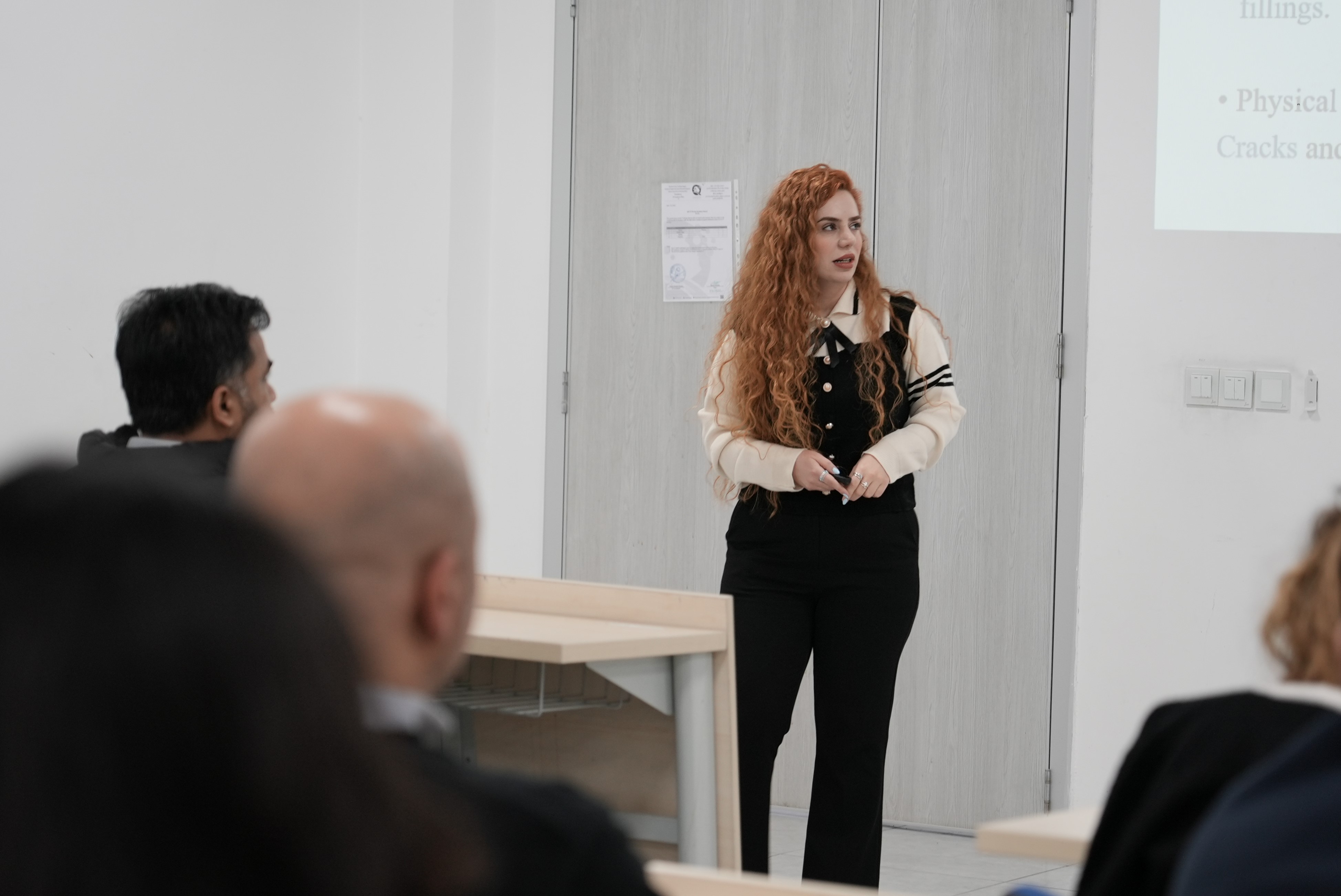 م. زەنوێر ئازاد لە فاکەڵتی پزیشکی ددان سیمینارێکی پێشکەش کرد دەربارەی "ڤینیری ددان" لە (٢٠٢٦/٢/١٧) لە سیمینارەکەدا تیشکی خستە سەر چەمکە سەرەکییەکان، ڕەچاوکردنی کلینیکی، و بەکارهێنانی مۆدێرن بۆ ڤینیری ددان، کە تێڕوانینێکی ئەکادیمی و پراکتیکی بەنرخی پێشکەش بە ئامادەبووان کرد. قدمت الأستاذة زانویر آزاد من كلية طب الأسنان ندوة بعنوان "قشور الأسنان" في (٢٠٢٦/٢/١٧). وسلطت الجلسة الضوء على المفاهيم الرئيسية والاعتبارات الكلينيكية والتطبيقات الحديثة لقشور الأسنان، مما وفر رؤى أكاديمية وعملية قيّمة للحضور. Ms. Zanwer Azad from the Faculty of Dentistry presented a seminar titled “Dental Veneers” on February 17, 2026. The session highlighted key concepts, clinical considerations, and modern applications of dental veneers, offering valuable academic and practical insights to attendees.