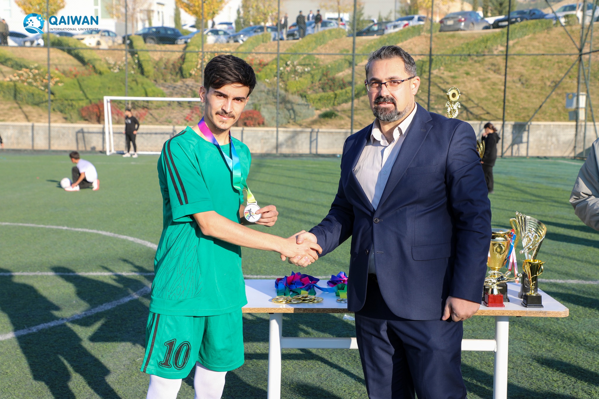 In acknowledgment of their achievement, Dr. Rebaz M. Nabi (the Vice President for Administrative and Financial Affairs) conferred the Presidential Awards of Qaiwan International University upon the victorious teams and extended congratulations to the winners for the adept execution of the tournament.