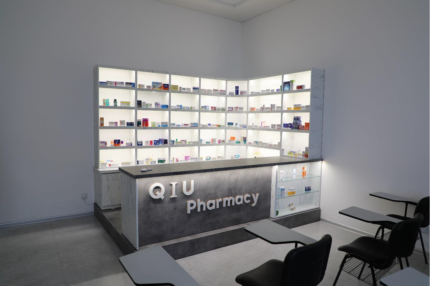 QIU Virtual Pharmacy is a unique and innovative concept that provides a classroom-like environment specifically designed for teaching purposes. Inside, neatly arranged shelves display empty medication packages, allowing aspiring students to engage in hands-on learning experiences without the risks associated with handling actual medications. This simulated setting enables students to practice various aspects of pharmacy, such as inventory management and prescription processing, including counseling patients on medication usage, while developing their skills and knowledge in a safe and controlled environment. With a focus on experiential learning, our virtual pharmacy enables our students to gain practical expertise, ensuring they are well-prepared to deliver high-quality healthcare services once they enter real-world pharmacy.